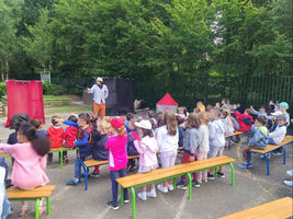 Nos deux acteurs peuvent faire leur show en plein air, directement dans la cour de l'école, sur la place du village, ou sur un coin de verdure !